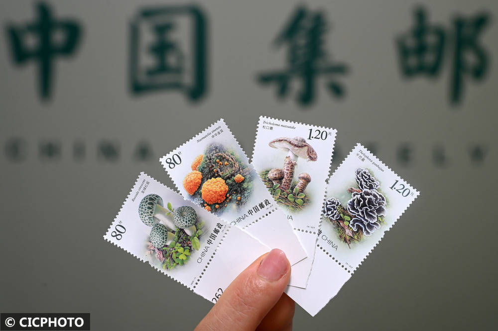 ↑2025年7月12日在中国邮政集团有限公司四川省内江市东兴区分公司拍摄的《食用菌(二)》特种邮票。CICPHOTO/兰自涛 摄编辑:马兰